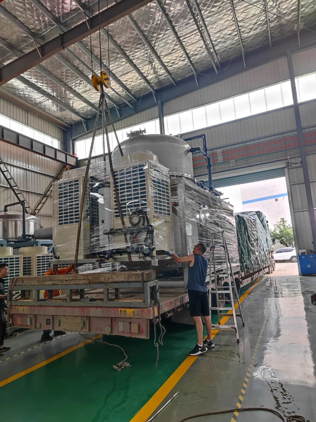 7月13日,朗盼環(huán)境完成了四月中標(biāo)中鈔的項目:1臺20噸/天低溫?zé)岜谜婵照舭l(fā)器+1臺3噸/天的低溫?zé)岜谜婵战Y(jié)晶器,并裝車發(fā)往成都,以及太倉客戶的1臺10噸/天低溫?zé)岜谜婵照舭l(fā)器,順利完成項目交付。