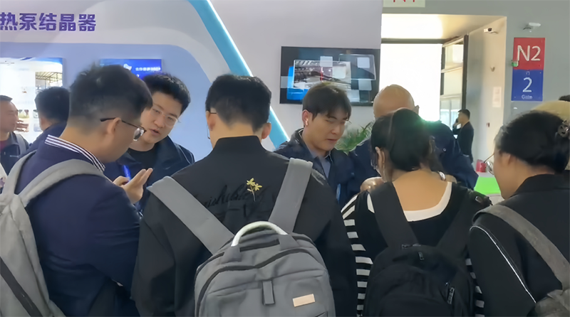 V-HP低溫蒸發(fā)器的展出,不僅為工業(yè)市場帶來了更智能、更高效、更低耗的廢水處理新選擇,也充分展現(xiàn)了朗盼環(huán)境在廢水處理領(lǐng)域的雄厚實力。我司自主研發(fā)的低溫熱泵結(jié)晶器,通過將溫敏性生物合成與結(jié)晶技術(shù)及微流控技術(shù)相融合,實現(xiàn)了在低溫條件下對生物制品的高效合成濃縮與結(jié)晶。這種技術(shù)的應用有效降低了高溫蒸發(fā)可能帶來的生物活性物質(zhì)損害風險,從而在市場上填補了技術(shù)空白。為了讓更多的客戶了解我司產(chǎn)品的實力,現(xiàn)場開啟了填寫意向單環(huán)節(jié),我司銷售們應接不暇。