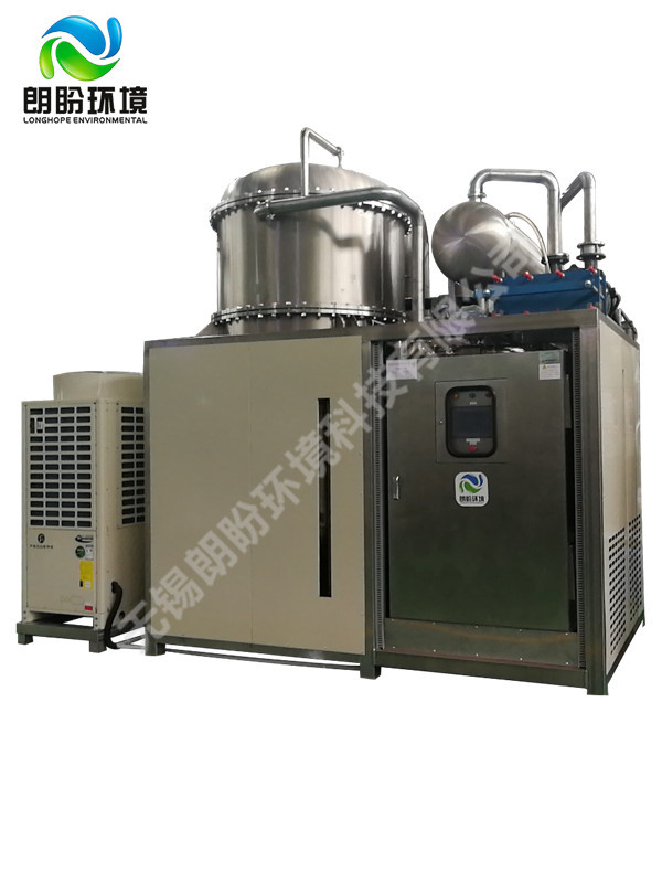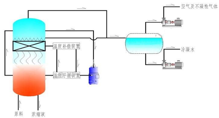 低溫熱泵蒸發(fā)器由無錫朗盼環(huán)境科技有限公司主持研發(fā)生產,是其全系列工業(yè)廢水處理技術產品中及其重要的一環(huán)。 V-HP系列真空熱泵蒸發(fā)系統(tǒng),獨特地采用高效的壓縮式熱泵技術,結合合適的真空運行區(qū)間,使得對于各種工業(yè)廢水的蒸發(fā)濃縮處理具有了廣泛的適應性,并且使得處理能耗大幅度的下降,不但讓各種廢水的濃縮減量在技術上更加合理,更重要的是讓應用用戶在經濟上樂于接受。 V-HP系列真空熱泵蒸發(fā)系統(tǒng),標準工況下其主機能效比達到9以上,遠遠的超過了多效蒸發(fā)器(一效、二效、三效、四效能效比分別為0.9,1.7,2.4,3.0)擴容濃度蒸發(fā)器(能效比為4.2)。更為重要的是,由于其采用與以往不同的技術組織,其全過程運行溫度低于40℃,因而在用于工業(yè)廢水場合并伴有熱敏性物質回收的應用中顯得非常合適。同時因為該系統(tǒng)構成中優(yōu)化了的熱泵系統(tǒng)具有足夠寬泛的工況適應性,在針對廢水液中常常遇到的蒸發(fā)濃縮過程中,沸點升高的門檻有著自適應的能力,并且依然能保持其很高的能效比。(例對NaOH 25%的溶液,其主機能效比依然可達6.5)